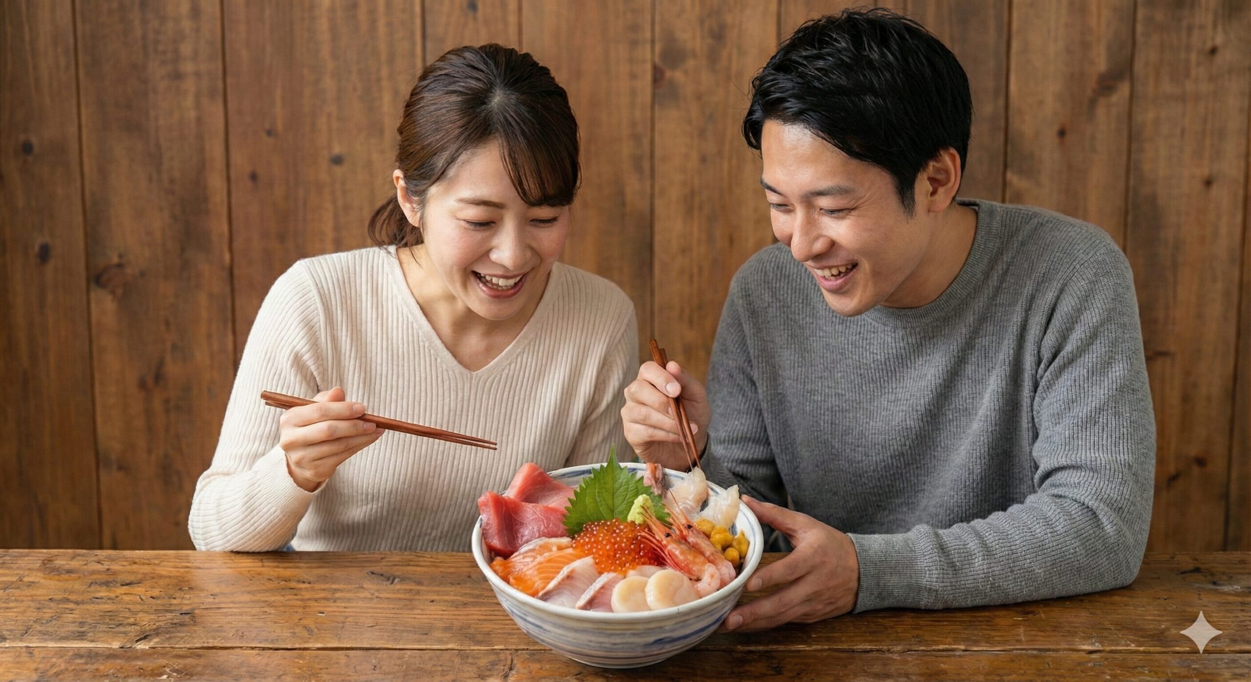 ボリュームを求めるなら網元の大漁海鮮どんぶり。中心に旬の地魚、その周囲にイクラや甘えび、時にトロや貝類が華やぎを添えます。ひと口ごとに違う相が立ち上がるのが海鮮丼の醍醐味。味に起伏を付けたいなら、濃いめの漬けと清涼感のある白身、香りの強い青物の三角形を意識してローテーションするのがおすすめです。漬けマグロいくら丼はタレの甘辛とイクラの塩味の往復運動が気持ちいいバランサー。ホタテ・ウニを使った丼は甘味のベクトルが一直線に伸びるので、途中でワサビや柑橘を挟むと最後まできれいに食べ切れます。