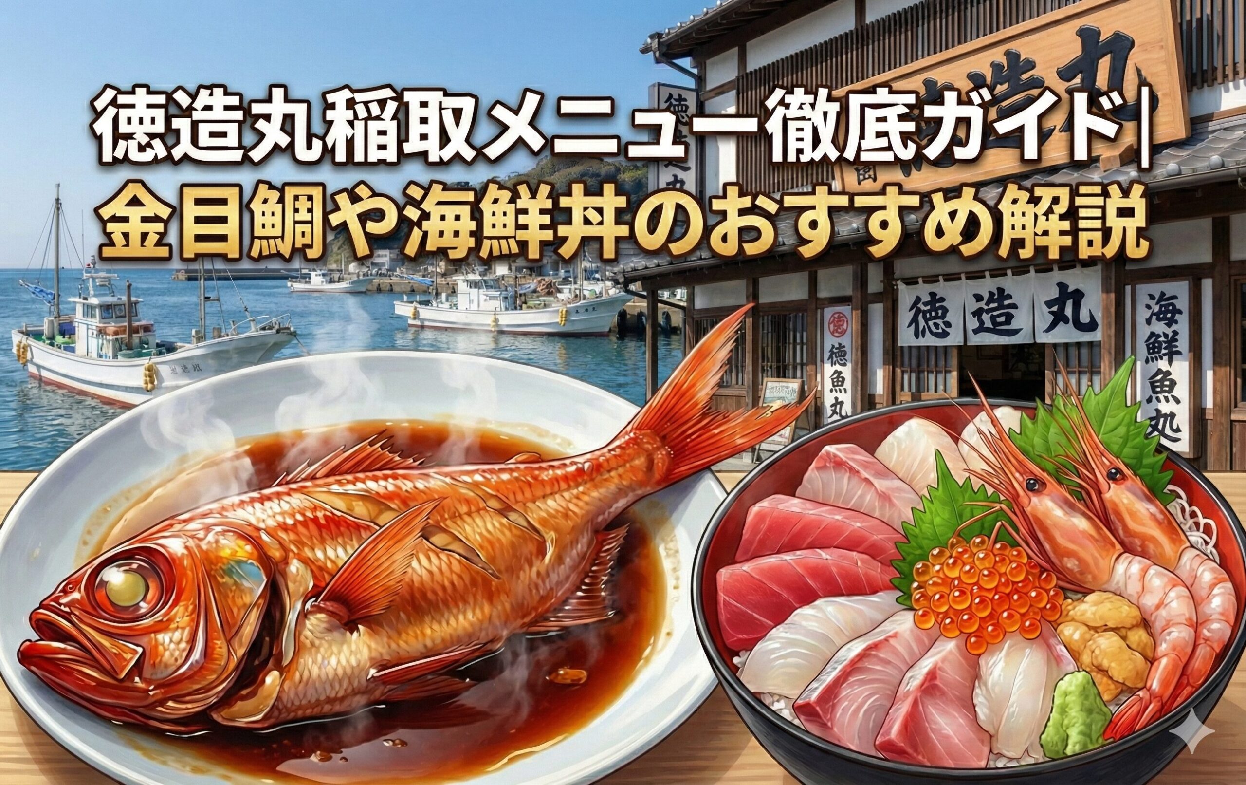 徳造丸を味わう、運営者の小西です。徳造丸稲取のメニューが知りたい、金目鯛の煮付けはどれを選べばいい、海鮮丼の種類やランチとディナーの違い、予約や営業時間、アクセスや駐車場、テイクアウトや価格の目安、伊勢海老やあわびなどの豪華膳も気になる…ここ、気になりますよね。この記事では、徳造丸稲取のメニューや海鮮丼、金目鯛の煮付け、ランチ、ディナー、予約、営業時間、アクセス、駐車場、テイクアウト、価格、口コミの見方までを私の視点でわかりやすく整理します。読後には、あなたが現地で迷わず注文できるように、選び方のコツもまとめています。
