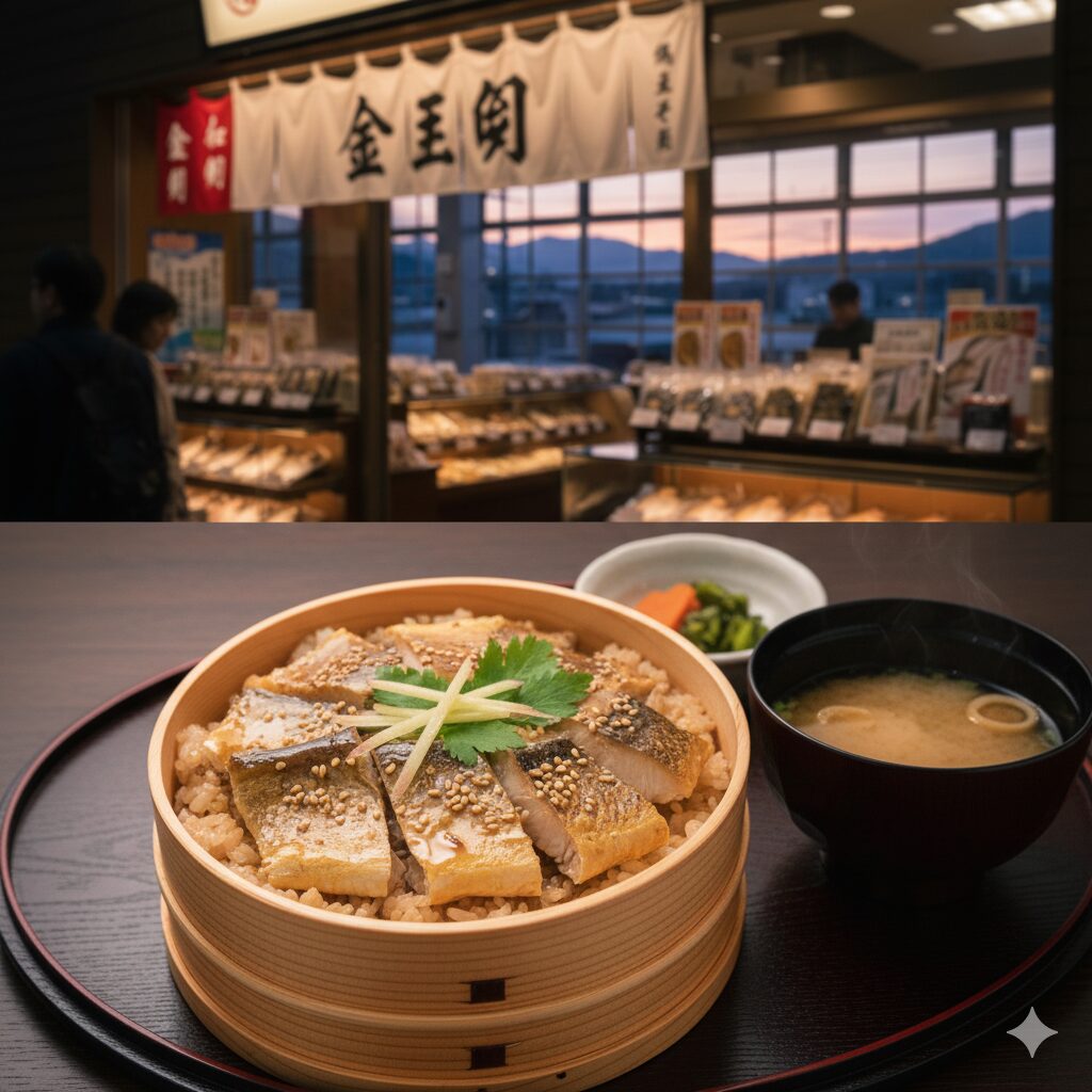 わっぱめしの良さは、見た目の華やかさと、ふたを開けた瞬間の香りです。金目鯛の切り身や貝類がご飯の上にきれいに並んでいて、車内でふたを開けるだけでちょっとしたごちそう気分になります。価格帯としては、一般的な駅弁より少し高めに感じるかもしれませんが、「旅のクライマックスにふさわしい一食」と考えると、満足度はかなり高い部類だと思います。