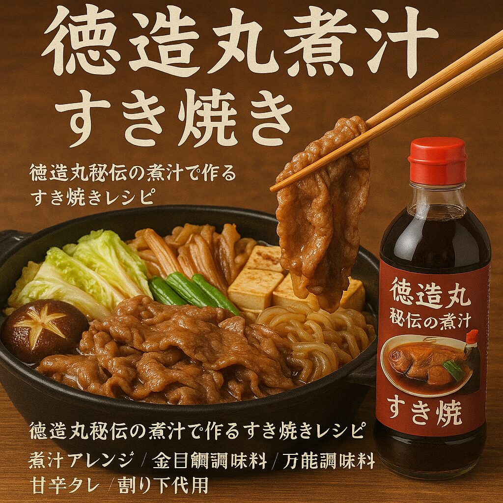 この記事では、徳造丸の人気お土産「秘伝の煮汁(しょうゆ味)」を、すき焼きや煮物、丼もの、炊き込みご飯まで幅広く楽しむためのレシピと使い方を、私自身が実際に自宅でヘビーローテーションしてきた経験をもとに、かなり踏み込んでまとめています。